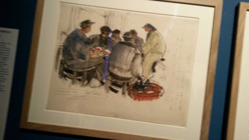 Une bonne partie de l’exposition est consacrée à la pêche à la morue en haute mer. C’est un pan majeur de l’histoire de la pêche européenne, et très rude. Les navires partaient pour 6 mois vers les mers froides de Terre-Neuve, du Labrador, d’Islande et du Groenland, les pêcheurs abandonnaient leur famille pour cette durée, Certains même ne revenaient pas car la mer peut être fort violente. Toute cette histoire est racontée à travers dessins, tableaux, films, livres… avec notamment une mise en avant du plus célèbre, Pêcheur d’Islande.