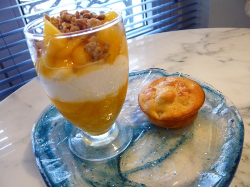 Envie de faire un dessert à base de pêches, c’est la pleine saison, elles sont mûres, juteuses et parfumées. Compote, tarte, gâteau, … ? Tiens, si je faisais un gâteau ricotta-pêche ? Non, plutôt une verrine, c’est plus rigolo.