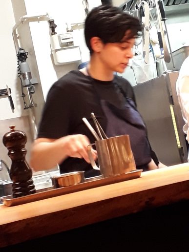 la cuisine palestinienne de Ruba Khouri lors d’une « résidence » éphémère d »un soir chez Fulgurances. J’avais rencontré Ruba chez Ibrik, petite cantine du 9e, où elle cuisinait toute la carte salée et sucrée. Un repas copieux et délicieux pour nous faire découvrir sa cuisine liée à ses origines palestiniennes : trois délicieuses entrées, trois plats (dont un fabuleux couscous au cabillaud et citron caviar) et deux desserts. Même en en laissant un peu, j’avais vraiment trop mangé ! (comme je l’explique à mes patient(e)s, ne cherchons pas la perfection dans l’écoute de nos sensations alimentaires, il y a bien sûr des moments où on mange trop, et on laisse le corps réguler ensuite).