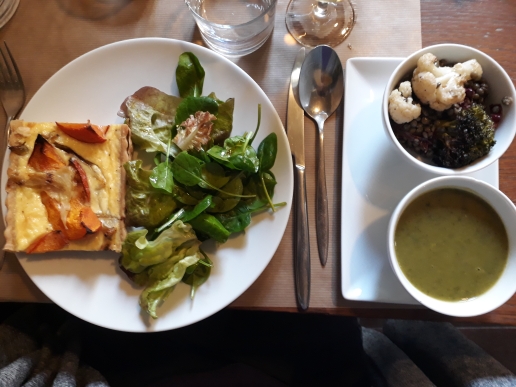 J’ai découvert avec plaisir les Pipelettes qui proposent une carte courte avec toujours une petite salade et une petite soupe en accompagnement du plat, végétarien ou pas. Varié et savoureux.