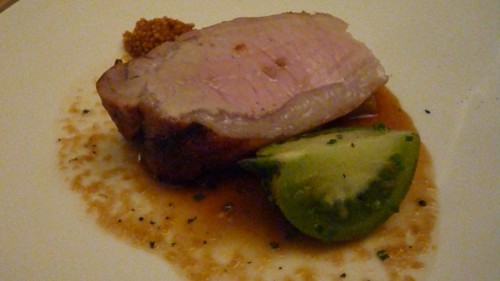 Deuxième plat : porc noir de Bigorre, tomate verte et moutarde, une belle harmonie